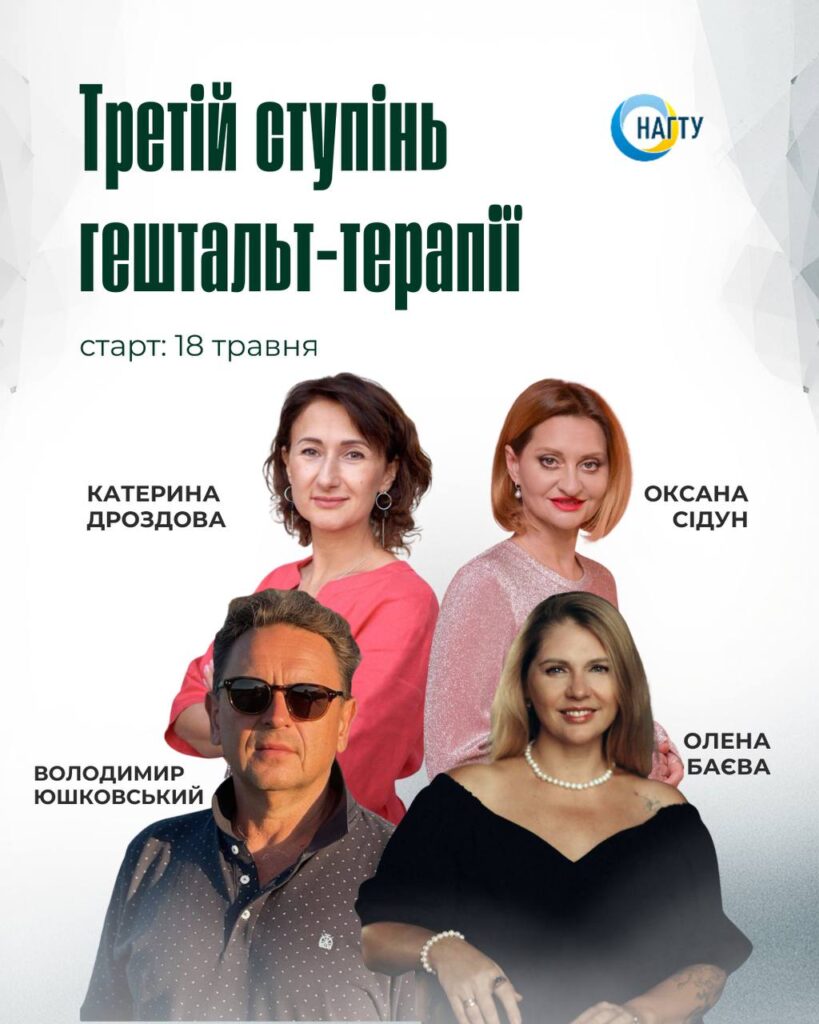 Владимир Юшковский –   ведущий тренер НАГТУ, аккредитований терапевт и супервизор, клинический психолог. Аккредитованный терапевт ЕАГТ